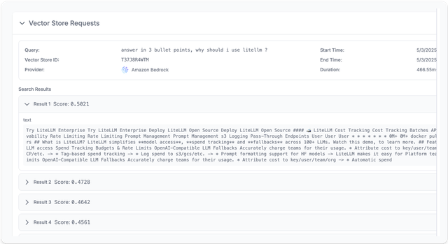 LiteLLM integrates with vector stores, allowing your models to access your organization's data for more accurate and contextually relevant responses.